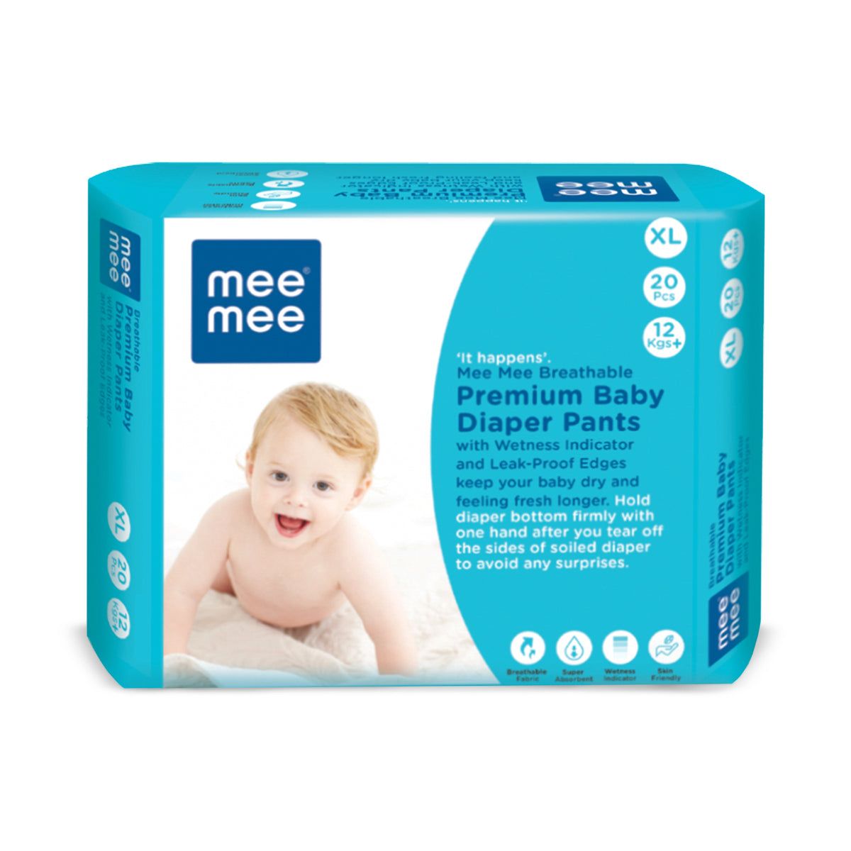 Mee Mee Premium Breathable Small/Medium/Large/Extra Large size Baby Taped Diapers , Super Absorbent, Cotton Soft with Wetness Indicator for New Born Babies/Infants with Protection Upto 12 Hrs